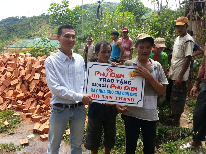 Nhằm hỗ trợ cha con người rừng Hồ Văn Thanh sớm ổn định cuộc sống mới, Công ty TNHH Phú Điền đã nhận tài trợ toàn bộ khối lượng gạch xây nhà cho 2 cha con ông tại xã Trà Phong, Tây Trà, Quảng Ngãi. Ngôi nhà sẽ được xây mới trên nền nhà cũ của ông Hồ Văn Tri, sau đây là một số hình ảnh: